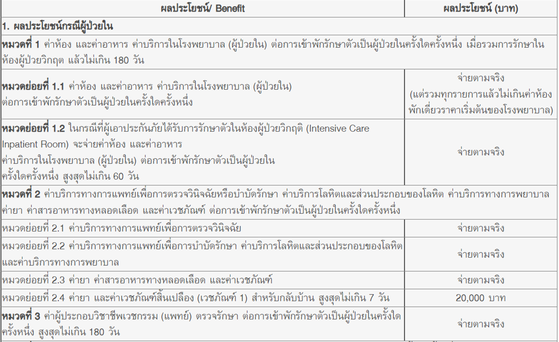 1. ผลประโยชน์กรณีเป็นผู้ป่วยใน