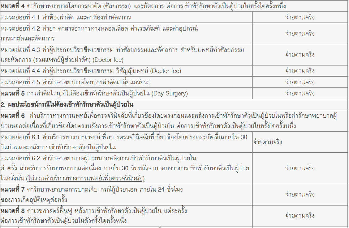 2. ผลประโยชน์กรณีไม่ต้องเข้าพักรักษาตัวเป็นผู้ป่วยใน