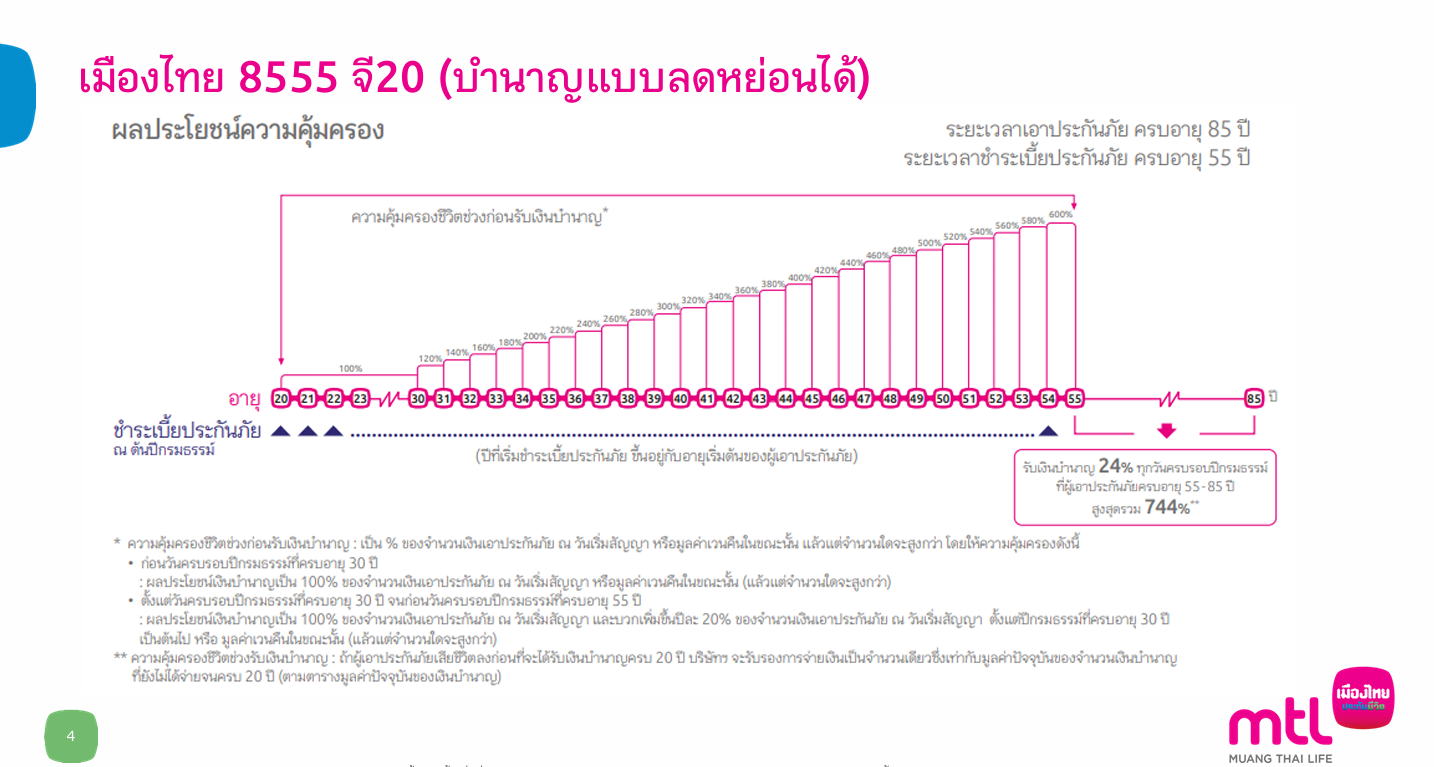 4. ระยะเวลาชำระเบี้ยประกันภัย : ครบอายุ 55 ปี