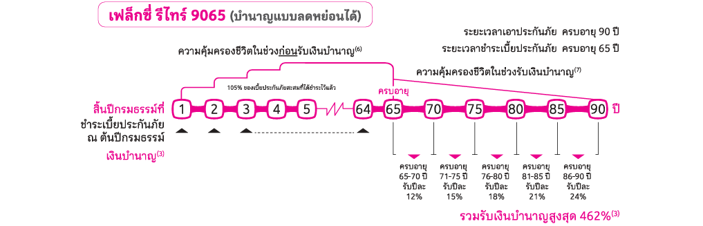 แบบประกันภัยเฟล็กซี่ รีไทร์ 9065 (บำนาญแบบลดหย่อนได้) : 20 ปี – 60 ปี