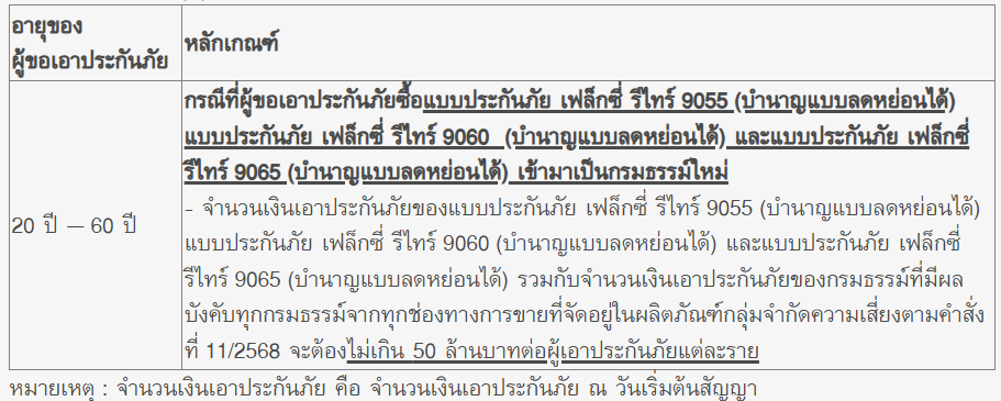 การนับจำนวนเงินเอาประกันภัยในการตรวจสุขภาพ : 50% ของทุนประกันภัย ณ วันเริ่มต้นกรมธรรม์